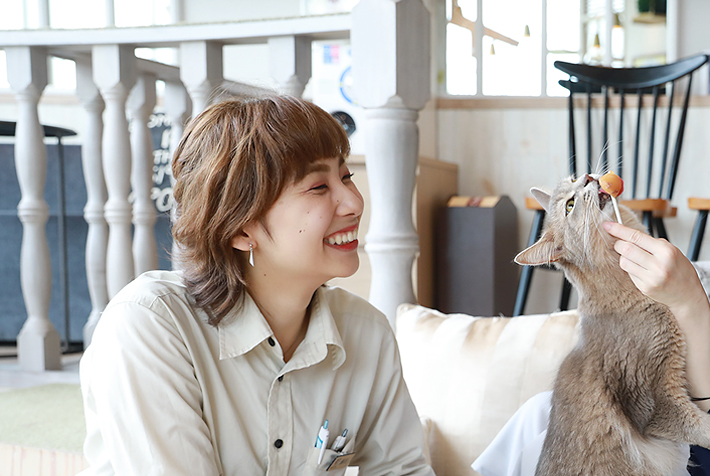 私は「いつもの時間を猫と過ごす」というお店のコンセプトに惹かれて入社しました。
