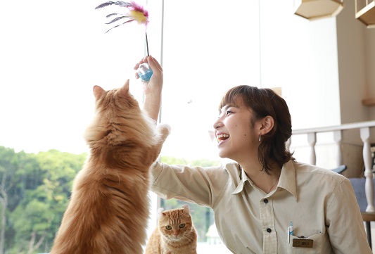 猫が好きなお客様はもちろん、付き添いでいらしたお客様にも楽しんでいただくために、猫の魅力を伝えながら“また来たい”と思っていただけるサービスを心がけています。
